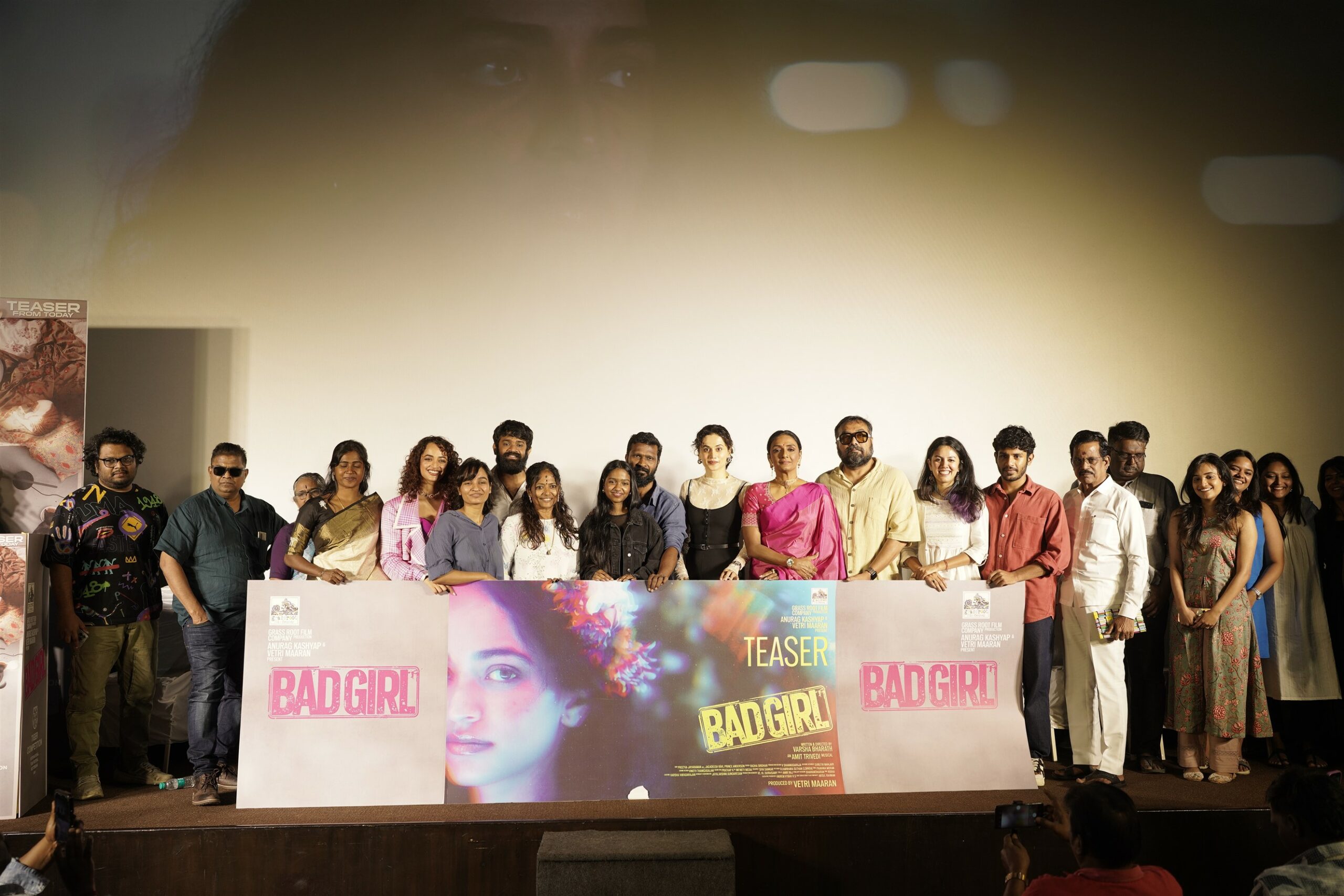அனுராக் கேஷ்யப் மற்றும் வெற்றிமாறன் இணைந்து கிராஸ் ரூட் பிலிம் கம்பெனி தயாரிப்பில், அஞ்சலி சிவராமன், சாந்தி பிரியா, ஹ்ரிது ஹருண், ‘TeeJay’ அருணாசலம் மற்றும் சரண்யா ரவிச்சந்திரன் நடிப்பில், வெற்றிமாறனின் உதவி இயக்குனரான வர்ஷா பரத்தின் இயக்கத்தில் உருவான “Bad Girl” படத்தின் டீசர் வெளியீட்டு விழா சமீபத்தில் நடைபெற்றது. இவ்விழாவில் படத்தின் தயாரிப்பாளர்களான வெற்றிமாறன் மற்றும் அனுராக் கேஷ்யப், நடிகர்களான அஞ்சலி சிவராமன் சாந்தி பிரியா, ஹ்ரிது ஹருண், படத்தின் எடிட்டரான ராதா ஸ்ரீதர் மற்றும் சிறப்பு விருந்தினர்களாக கலைப்புலி S தானு, இயக்குனர் மிஷ்கின், நடிகை டாப்ஸி பண்ணு ஆகியோர் விழாவில் கலந்து கொண்டு சிறப்பித்தனர்.