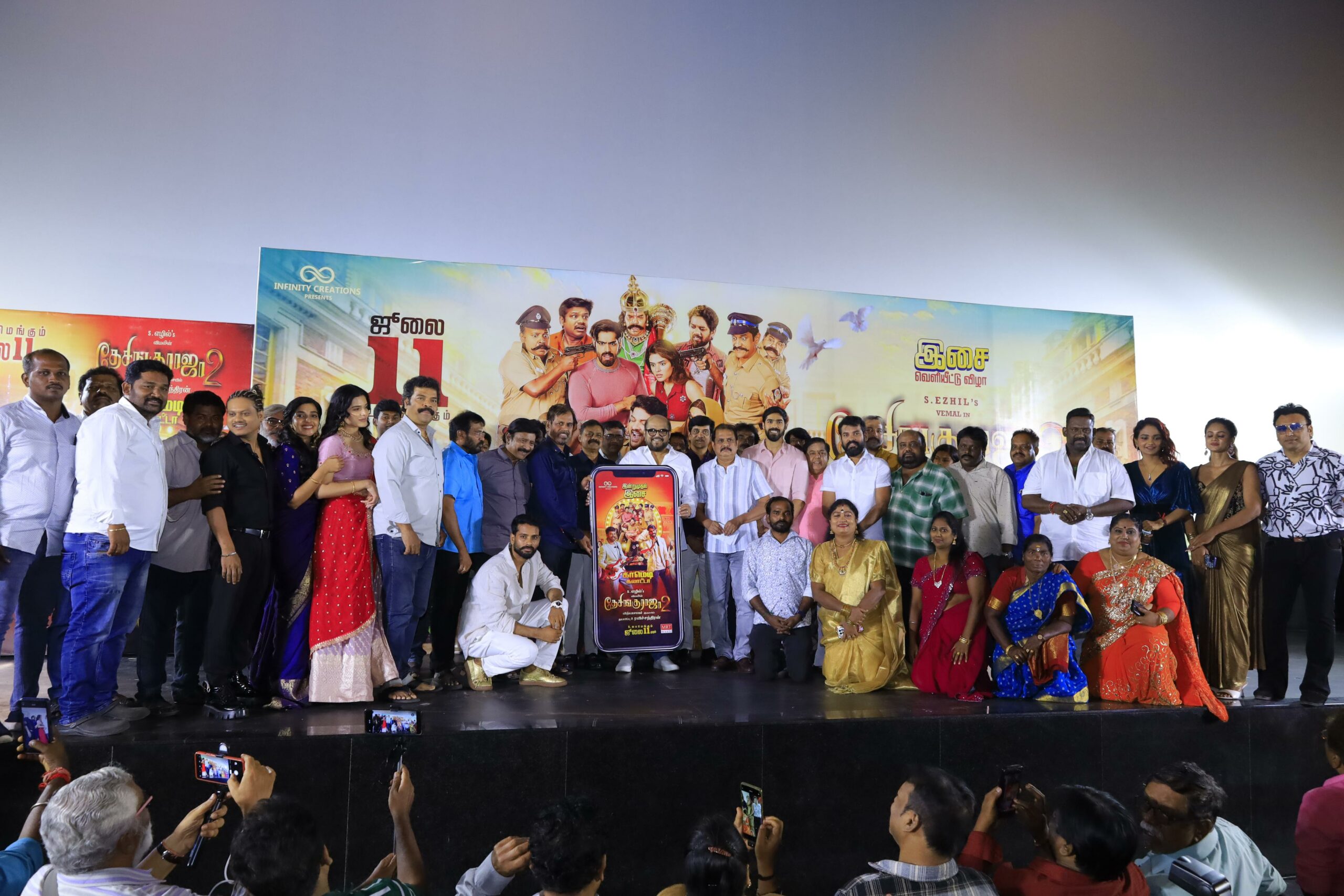 இன்பினிட்டி கிரியேஷன்ஸ் சார்பில் P ரவிச்சந்திரன் தயாரிப்பில் உருவாகியுள்ள இந்தப்படத்தில் விமல் கதாநாயகனாக நடிக்க, அவருக்கு இணையான இன்னொரு முக்கிய கதாபாத்தில் நடிகர் ஜனா அறிமுகமாகிறார். கதாநாயகிகளாக பூஜிதா பொன்னாடா, ஜூலி, ஹர்ஷிதா ஆகியோர் நடித்துள்ளனர். முக்கிய வேடங்களில் சிங்கம்புலி, ரவிமரியா, சாம்ஸ், ரோபோ சங்கர், சுவாமிநாதன், மொட்ட ராஜேந்திரன், மதுரை முத்து, விஜய் டிவி புகழ், விஜய் டிவி கோதண்டம் என மிகப்பெரிய நட்சத்திர பட்டாளமே இதில் நடித்துள்ளனர். மெலடி கிங் வித்யாசாகர் ‘பூவெல்லாம் உன் வாசம்’ படத்தை தொடர்ந்து 23 வருடங்களுக்கு பிறகு மீண்டும் இயக்குநர் எழிலுடன் இணைந்து இந்த படத்தில் பணியாற்றியுள்ளார். படத்தின் ஒளிப்பதிவை செல்வா கவனித்துள்ளார்.