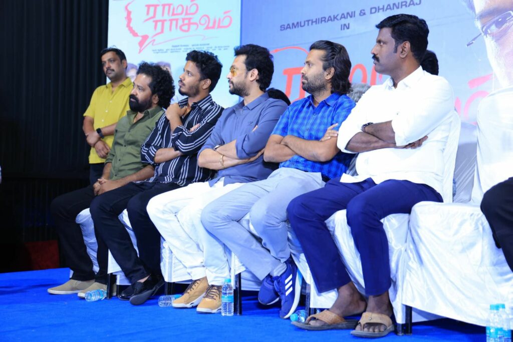 நடிகரும் இயக்குநருமான சமுத்திரக்கனி பேசுகையில், தன்ராஜ் போகிற போக்கில் ஒன்றரை நிமிஷத்துல கதை சொன்னான். கேரவன்ல இருந்து இறங்கி ஷாட்க்குப் போற கேப்பில், கதையைச் சொன்னான். ‘நிமிர்ந்து நில்’ தெலுங்கு ஷூட்டிங்கில் எல்லா வேலையும் செய்வான். அப்போ அவன் மீது தனிக் கவனம் வந்தது. ‘ஒரு கதை கேட்டேன். நீ நடிச்சா நல்லாயிருக்கும்’ என விமானம் கதையைக் கேட்க வச்சது அவன்தான். விமானம் இயக்குநரின் கதை தான் ராமம் ராகவம். இவன் கேட்டு வாங்கியிருக்கான். கதையைக் கேட்டதும், ‘அப்பா கேரக்டரா சரி பண்ணிடுவோம் போடா’ என்றேன். ‘அண்ண !’ என்றான். ‘நீ சொல்ல வர்றது முக்கியமான விஷயம். சமூகத்துக்குத் தேவையான விஷயம். தமிழ்நாட்டுல கூட இப்படி 15 கேஸ் நடந்திருக்கு. வெளில இருந்து பார்த்தா அப்பா-மகன் கதையா தெரியும். ஆனா உள்ளுக்குள்ள வச்சிருக்கிறது ரொம்ப ஸ்ட்ராங்கான விஷயம். இந்தப் படம் பார்த்து, ஒரே ஒரு பையன் திருந்திட்டா போதும், இந்தப் படம் மாபெரும் வெற்றி. நல்ல படைப்பை ரசிகர்கள் என்றுமே கைவிட்டதில்லை. பணத்தை விட, எத்தனை பேரை மனசு கொள்ளை அடிக்குதுங்கிறதுதான் ஒரு படைப்புக்கு முக்கியம். ராமம் ராகவம் அப்படிப்பட்ட படம்” என்றார்.