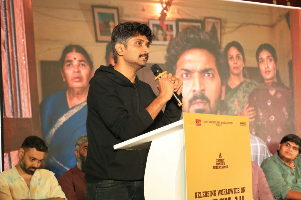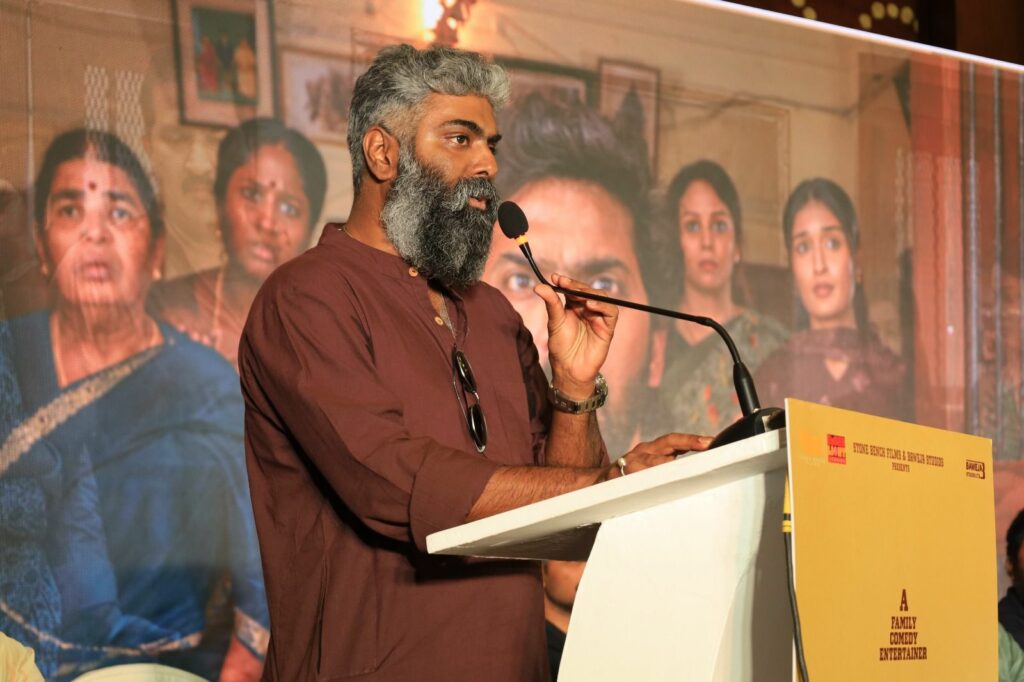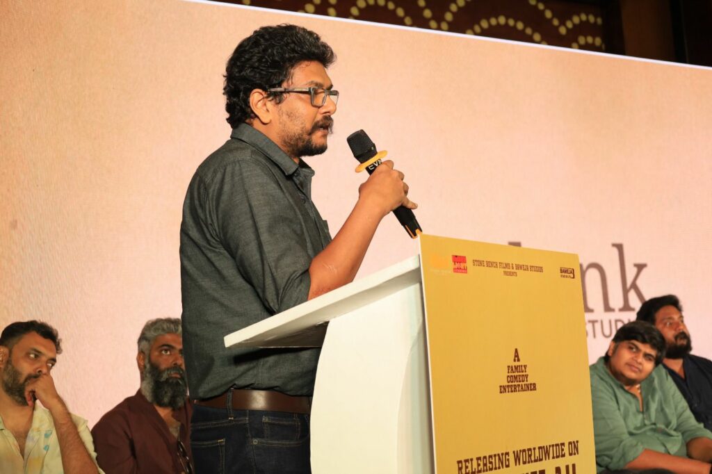 இயக்குநர் இளங்கோ ராம் பேசுகையில், படத்தை நல்லவிதமாக கொண்டு போய் சேர்க்க நல்ல பேனர் கொண்ட தயாரிப்பாளர்கள் முக்கியம். அந்த வகையில் கார்த்திக் சுப்புராஜுக்கு நன்றி. ‘ஆண்பாவம்’, ‘இன்று போய் நாளை வா’ போன்ற எண்பதுகளில் வந்த படங்கள் எனக்குப் பிடிக்கும். அதுபோல, குடும்பத்துடன் வந்து ஜாலியாக பார்க்கும்படியாக இந்தப் படம் இருக்கும். வைபவ்- சுனில் இந்த கதைக்கும் மிகப்பொருத்தமாக இருந்தார்கள். தனம், சுவாமிநாதன், கஜராஜ், தீபா என எல்லாரும் சூப்பராக நடித்திருக்கிறார்கள். இந்தப் படத்தை குடும்பத்துடன் வந்து பார்க்கலாம். எந்த இடத்திலும் முகம் சுழிக்க மாட்டீர்கள். நல்ல டீம் எனக்கு கிடைத்துள்ளது என்றார்.