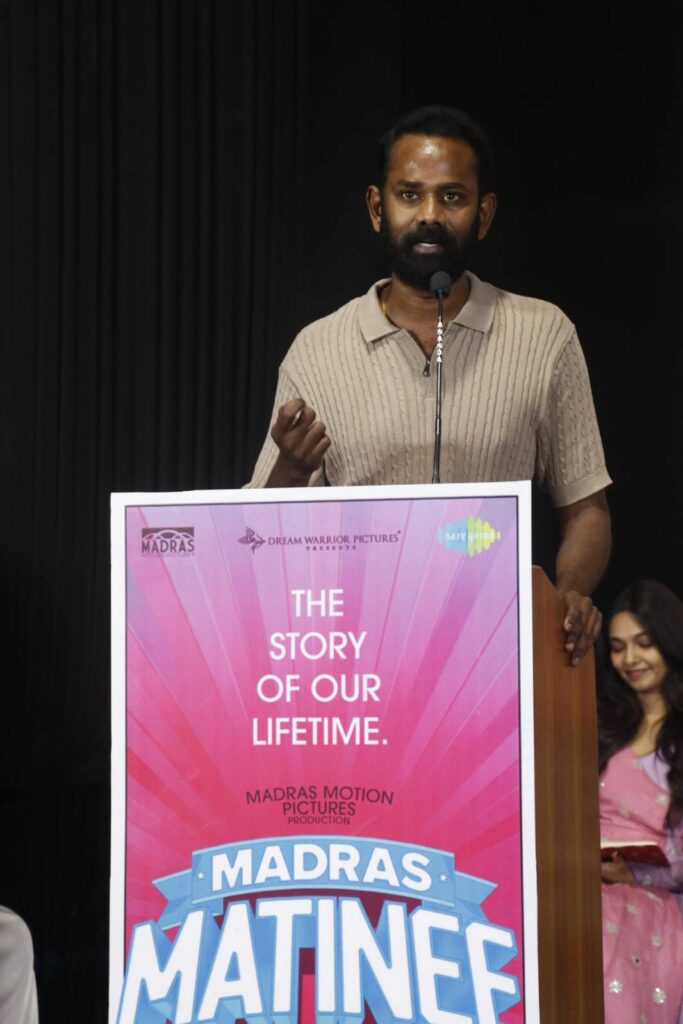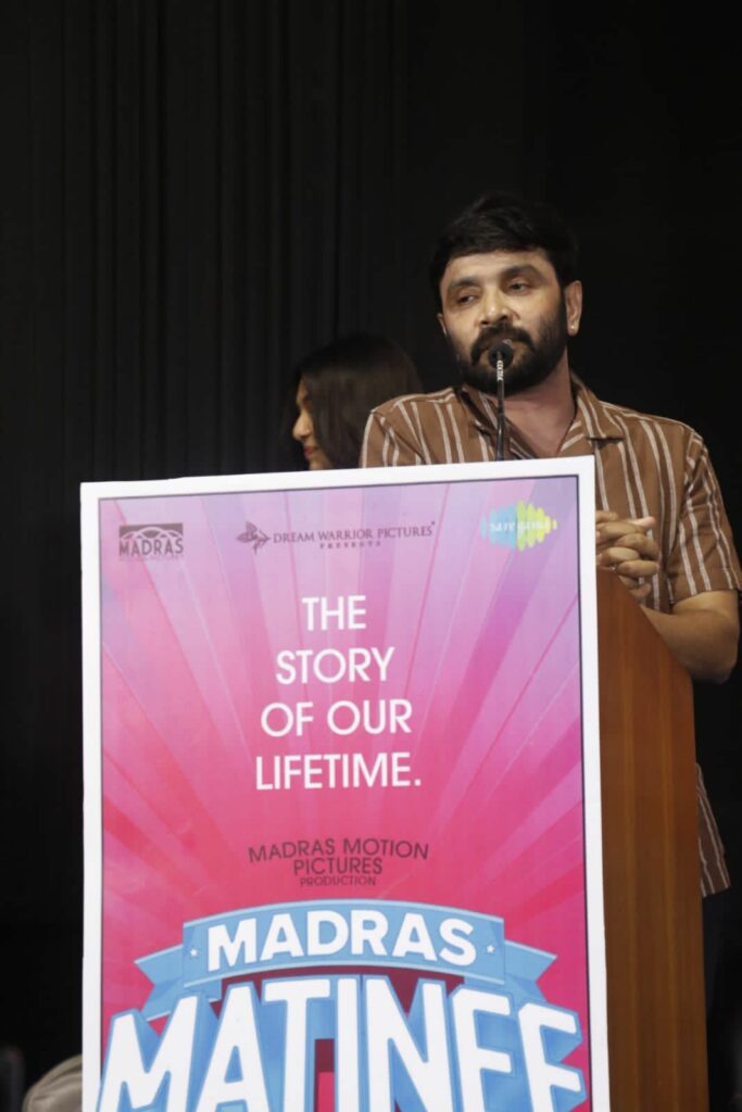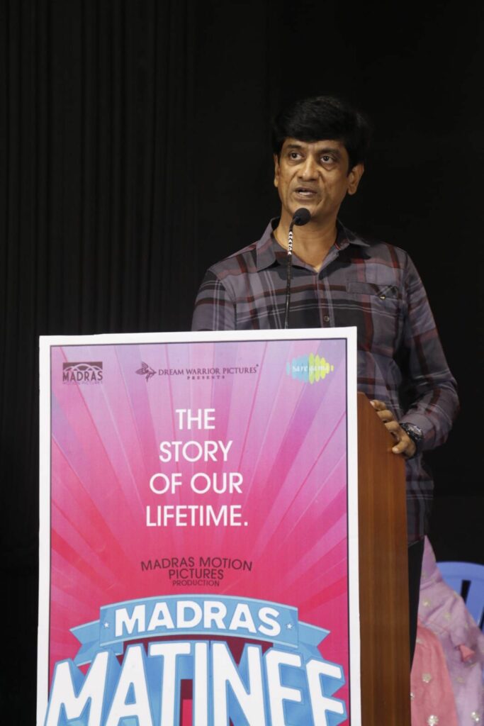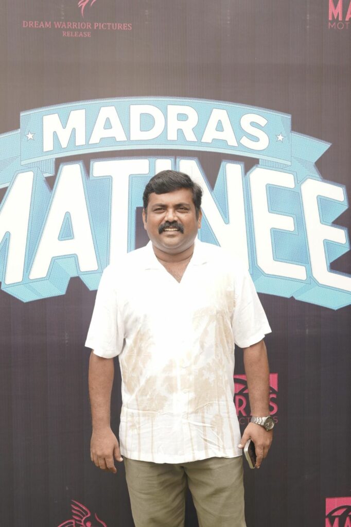 ட்ரீம் வாரியர் பிக்சர்ஸ் தயாரிப்பாளர் எஸ் ஆர் பிரபு பேசியதாவது… மெட் ராஸ் மேட்னி படத்தை ட்ரீம் வாரியர் பிக்சர்ஸ் நிறுவனத்தின் மூலமா வெளியிடுவதில் மிக்க மகிழ்ச்சி. இன்றைக்கு மொத்த இந்திய சினிமாவும் ஒரு முக்கியமான ஒரு காலகட்டத்தில இருக்குன்னு நினைக்கிறேன். சினிமாவின் மார்க்கெட் முழுக்க மாறியிருக்கு, கடைசி ஒரு வருடத்தில் என்ன படம் செய்வது என்பதில் எல்லோரிடமும் குழப்பம் இருக்கிறது, ஆனால் மக்கள் இன்னும் தியேட்டருக்கு நிறைய வந்து படம் பார்க்கிறார்கள். நல்ல படங்களை சப்போர்ட் பண்றாங்க. எல்லாரும் ஒரு படம் ஆரம்பிக்கிறப்போ, இந்த படம் மிகப்பெரிய வெற்றி பெறணும். நமக்கு ஒரு அங்கீகாரம் கிடைக்கணும். நம்முடைய கனவு நிறைவேறணும். நிறைய பணம் சம்பாதிக்கணும். பேர சம்பாதிக்கணும் இந்த மாதிரி நிறைய ஒவ்வொருத்தருக்கும் ஒவ்வொரு மாதிரியான விஷயத்தோட ரொம்ப பாசிட்டிவாதான் ஆரம்பிக்கிறோம். ஆனால் ஆரம்பிக்கிற எல்லா படங்களும் அதே மாதிரியான அவுட்புட்டோட வந்து முழுமை பெறறது இல்லை. அது ரொம்ப சிக்கலான ஒரு விஷயம். நிறைய வெவ்வேறு விதமான கலைஞர்களுடைய பணிகள் ஒரு படத்துக்கு தேவைப்படுது, அது அழகா அமைஞ்ச படமா மெட்ராஸ் மேட்னி படத்தைப் பார்க்கிறேன். சின்ன படம் பெரிய படம் அப்படின்னு எப்பவுமே நம்மளே வகைப்படுத்திட்டே இருக்கோம். அப்படி இல்லாம  பெரும்பான்மையாக இருக்கக்கூடிய ஒரு மிடில் கிளாஸ் லைஃபை, ரொம்ப எதார்த்தமா அதே நேரத்துல ரசிக்கும்படியா இந்தப்படத்தில் சொல்லியிருக்கிறார்கள். ஒவ்வொரு கேரக்டர்ஸும் நம்ம வாழ்க்கையில நம்ம பார்த்த கேரக்டர்ஸ திரும்பி பார்க்கிற மாதிரி இருந்தது. ஒரு மிடில் கிளாஸ் லைஃப் மேட்னி ஷோவா  பாக்குற மாதிரியான ஒரு அனுபவம்தான் இந்தப்படம். நிறைய விஷயங்கள் ரொம்ப நாஸ்டாலஜிக்கா இருந்தது.   கார்த்திகேயன்மணி மிகச்சிறப்பாக படத்தை தந்துள்ளார். இப்படத்தின் ஒளிப்பதிவாளர் தமிழ் சினிமாவில் முக்கியமான ஆளாக வருவார், எல்லா நடிகர்களும் சிறப்பான நடிப்பைத் தந்துள்ளார்கள். இசையமைப்பாளர் பாலசாரங்கன் இசை மிகச்சிறப்பாக இருந்தது. காளி வெங்கட்டை வைத்து ஒரு ஆக்சன் படமே எடுக்கலாம் அவர் நடிப்பு அவ்வளவு சிறப்பாக இருந்தது. இப்படத்தை ஒரு மாஸ் கமர்ஷியல் சினிமாவாகத்தான் நான் பார்க்கிறேன் கண்டிப்பாக அனைவருக்கும் பிடிக்கும் என்றார்.