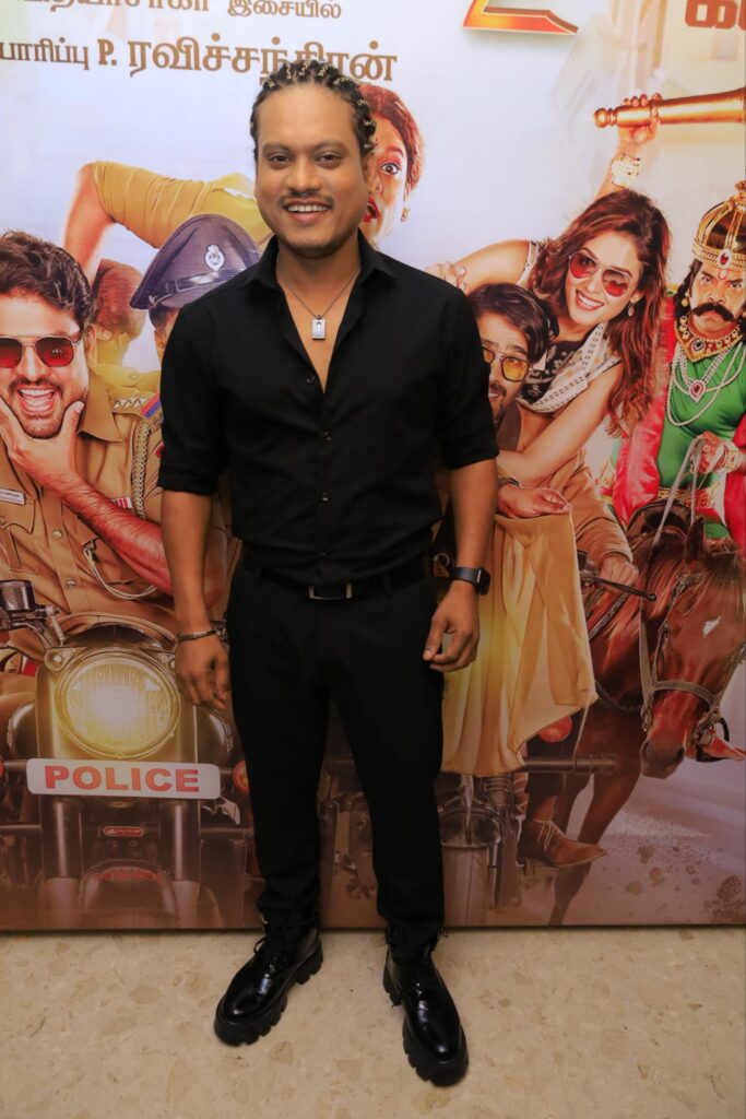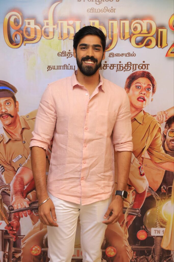 இசையமைப்பாளர் வித்யாசாகர் இசையில் இரண்டு படங்கள் அல்ல.. இரண்டேகால் படங்கள் பண்ணியிருக்கிறேன். கில்லி படத்தில் கொக்கர கொக்கரக்கோ பாடலில் நான் ஆடியிருக்கிறேன். இயக்குநர் எழிலுடன் இது எனக்கு இரண்டாவது படம். கிட்டத்தட்ட 13 வருடங்களுக்குப் பிறகு இயக்குநர் எழிலுடன் இணைந்துள்ளேன். இதற்கு முன்பு நான் நடித்த விலங்கு என்கிற வெப்சீரிஸ், போகும் இடம் வெகு தூரம் இல்லை படம் எல்லாம் சீரியஸாக இருந்தன. அந்த சமயத்தில் தான் இயக்குனர் எழில் தேசிங்குராஜா 2 படத்திற்கு என்னை அழைத்தார். அப்படி சீரியஸாக நடித்துவிட்டு இந்த படத்தின் படப்பிடிப்பு தளத்திற்கு வந்தபோதே அவ்வளவு ரிலாக்ஸாக, ஜாலியாக இருந்தது