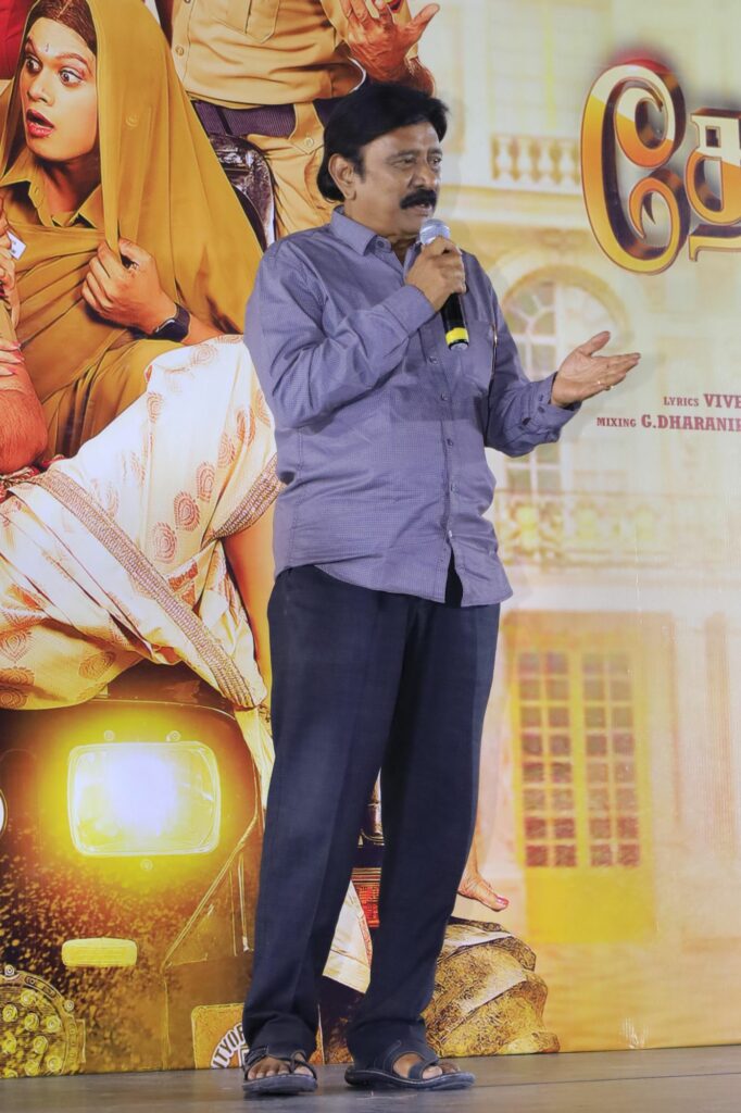இயக்குநர் ஆர்.வி உதயகுமார் பேசும்போது, இயக்குநர் எழில் இந்த டீசரில் என் கதாபாத்திரத்தை காட்டவில்லை. நான் என்ன கதாபாத்திரத்தில் நடித்து இருக்கிறேன் என்பதை சஸ்பென்சாக வைத்திருக்கிறார் போல. அப்படி ஒரு முதன்மையான மற்றும் முக்கியமான கதாபாத்திரம் அது. படத்தில் நான் இட்ட வேலையை செய்வதற்காகத்தான் அனைவரும் ஓடிக்கொண்டிருப்பார்கள். அப்படி ஒரு கதாபாத்திரம். இயக்குநர் எழிலுக்கு திரையுலகில் இது பொன்விழா ஆண்டு என்பதால் இந்த படம் நிச்சயம் வெற்றி படமாக அமையும். இந்த படத்தில் நடிகராக அறிமுகம் ஆகி உள்ள ஜனாவை பார்க்கும் போது நடிகர் ராணாவை பார்த்த உணர்வு ஏற்படுகிறது. நடிகர் (விஜய் டிவி)புகழ் பெண்ணாக பிறந்திருக்கலாம். அந்த அளவுக்கு கலக்கி இருக்கிறார். நானும் செல்வமணியும் படம் இயக்கிய காலங்களில் இருந்த ஹீரோக்களில் வெள்ளந்தியாக பேசக்கூடியவரான நடிகர் விஜயகாந்துக்கு அடுத்ததாக நான் இப்போது பார்க்க கூடியவர் நடிகர் விமல் தான். எல்லாவற்றையும் அரவணைத்து போகக்கூடிய மனப்பான்மை கொண்ட விமலுக்கு தோல்வி என்பது கிடையாது. இந்த படம் வெற்றி படமாக அமையும் என்று பேசினார்.