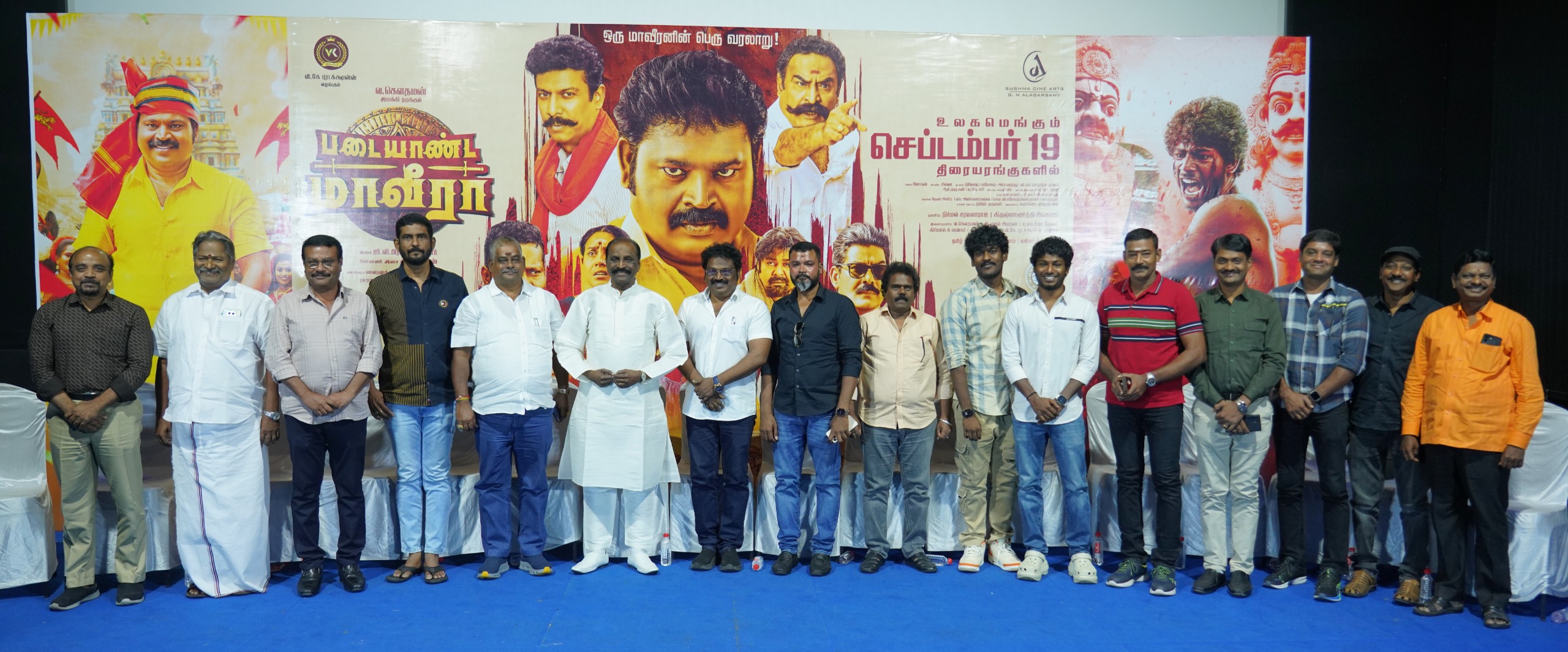 இயக்குநரும், நடிகருமான வ. கௌதமன் கதையின் நாயகனாக நடித்திருக்கும் ‘படையாண்ட மாவீரா’ திரைப்படத்தின் பத்திரிகையாளர் சந்திப்பு சென்னையில் நடைபெற்றது. வ. கௌதமன் இயக்கத்தில் உருவாகியுள்ள ‘படையாண்ட மாவீரா’ திரைப்படத்தில் வ. கௌதமன், சமுத்திரக்கனி, பூஜிதா பொன்னாடா, இளவரசு, ‘பாகுபலி’ பிரபாகர், சரண்யா பொன்வண்ணன், ‘ஆடுகளம்’ நரேன், மன்சூர் அலிகான், ரெடின் கிங்ஸ்லி, மதுசூதன் ராவ், ‘நிழல்கள்’ ரவி , ‘தலைவாசல்’ விஜய், சாய் தீனா உள்ளிட்டோர் நடித்திருக்கிறார்கள். கோபி ஜெகதீஸ்வரன் ஒளிப்பதிவு செய்திருக்கும் இந்த திரைப்படத்திற்கு ஜி.வி பிரகாஷ் குமார் மற்றும் சாம் சி. எஸ். இசையமைத்திருக்கிறார்கள். வட தமிழகத்தில் பெரும்பான்மையாக வாழும் மக்களின் நம்பிக்கை நட்சத்திரமாக வாழ்ந்து மறைந்த ‘காடுவெட்டி’ குருவின் சுயசரிதையை தழுவி தயாராகி இருக்கும் இந்த திரைப்படத்தை வி கே புரொடக்ஷன்ஸ் நிறுவனம் சார்பில் நிர்மல் சரவணனராஜ், எஸ். கிருஷ்ணமூர்த்தி ஆகியோர் இணைந்து தயாரித்திருக்கிறார்கள். இந்த திரைப்படத்தில் வ.கௌதமன், ஈ. குறளமுதன், யு .எம். உமாதேவன், கே. பாஸ்கர், கே. பரமேஸ்வரி ஆகியோர் இணை தயாரிப்பாளர்களாக பங்காற்றியுள்ளனர்.