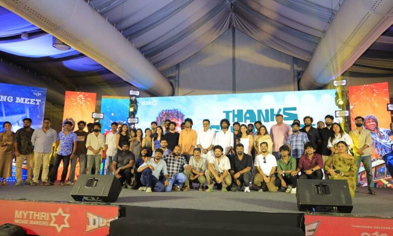 மைத்ரி மூவி மேக்கர்ஸ் தயாரிப்பில் கீர்த்தீஸ்வரன் இயக்கத்தில் நடிகர்கள் பிரதீப் ரங்கநாதன், சரத்குமார், மமிதா பைஜூ, ரோகிணி உள்ளிட்ட பலர் நடிப்பில் தீபாவளி பண்டிகையை முன்னிட்டு கடந்த 17 ஆம் தேதி திரையரங்குகளில் வெளியான படம் ‘டியூட்’. படத்தின் வெற்றியை கொண்டாடும் வகையில் இதன் நன்றி தெரிவிக்கும் விழா நடைபெற்றது.