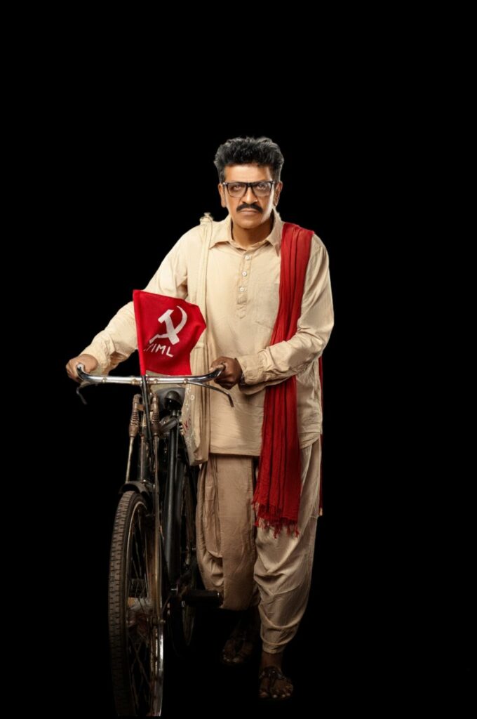 படக்குழுவினரால் வெளியிடப்பட்ட ஃபர்ஸ்ட் லுக் போஸ்டரில், டாக்டர் சிவராஜ்குமார் எளிமையான அதே நேரம், வலிமையான தோற்றத்தில் காட்சியளிக்கிறார். கண்கண்ணாடி அணிந்து, வெள்ளை குர்தா – பைஜாமா மற்றும் தோளில் சிவப்பு துண்டு போர்த்திய நிலையில், சைக்கிளை தள்ளிச்செலும் காட்சியில், பின்னணியில் சட்டமன்றம் தெரிகிறது. சைக்கிளில் தொங்கும் நெல் மற்றும் சுத்தியல் சின்னம் கொண்ட சிவப்புக் கொடி, அவரது இடதுசாரி சிந்தனையையும், அரசியலின் தன்மையையும் வெளிப்படுத்துகிறது. கும்மடி நரசைய்யாவின் பணிவு மற்றும் உள்மன வலிமையை சிவராஜ்குமார் முழுமையாக வெளிப்படுத்தியுள்ளார்.