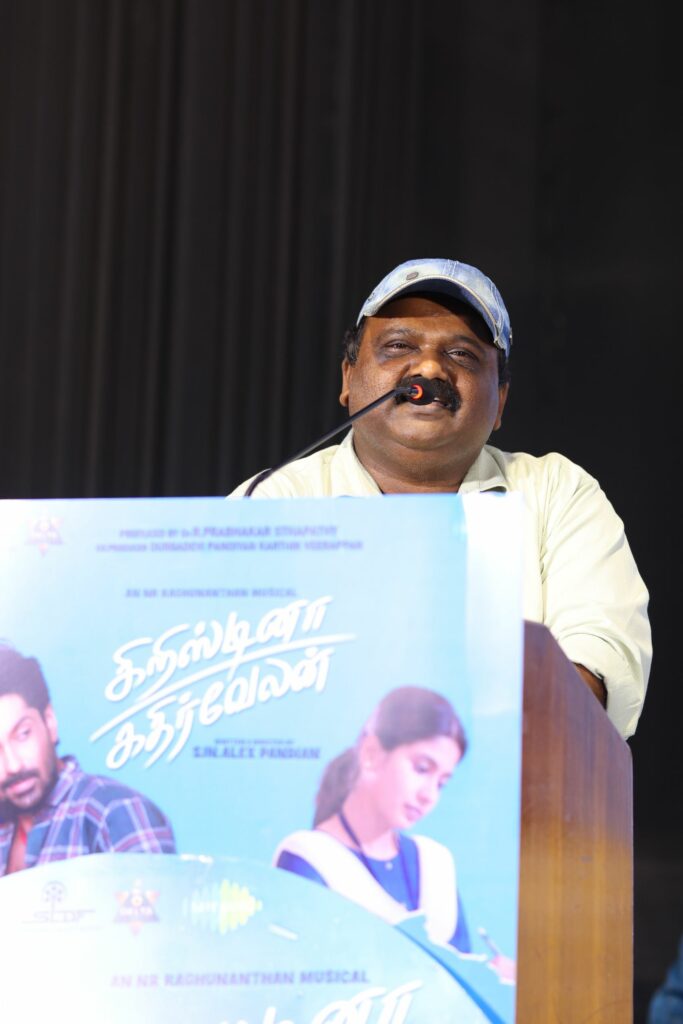 இயக்குநர் எஸ். ஆர். பிரபாகரன் பேசுகையில், ”கிறிஸ்டினா கதிர்வேலன் அழகான தலைப்பு. இது நான் இயக்கிய இது கதிர்வேலன் காதல் என்ற படத்தை நினைவு படுத்தியது. இப்படத்தை தயாரித்த தயாரிப்பாளருக்கும், இயக்கிய இயக்குநருக்கும் பணியாற்றிய அனைவருக்கும் என்னுடைய வாழ்த்துக்கள். தயாரிப்பாளர் ஸ்தபதி என்றார்கள். சிற்பி நல்ல கதையை தான் தேர்ந்தெடுத்து இருப்பார். அதனால் இந்த படம் மிகச்சிறந்த படமாக இருக்கும் என்று நான் நம்புகிறேன்.