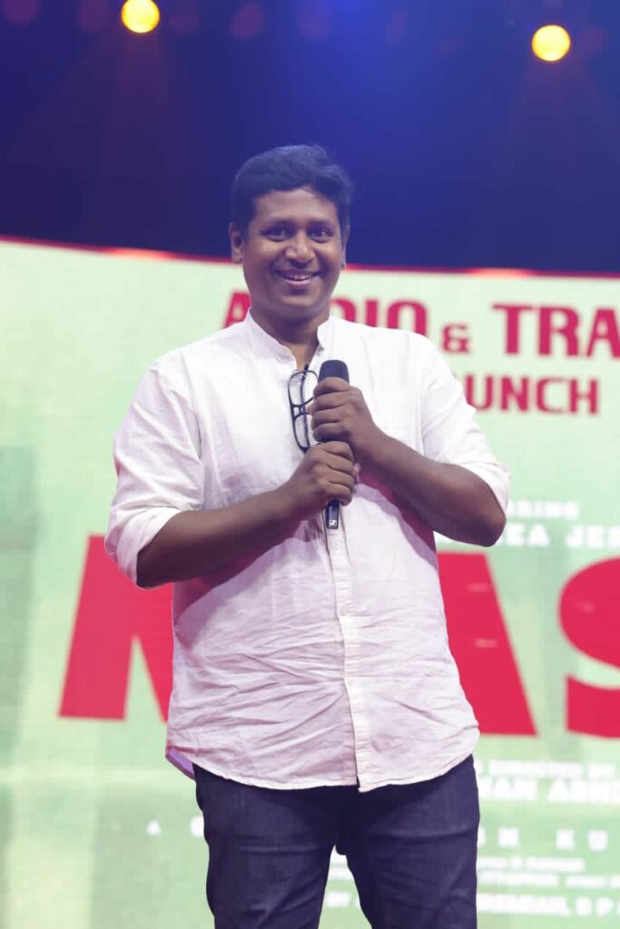மாஸ்க் டீமில் எல்லோருமே எனக்கு நெருங்கிய நண்பர்கள், நான் கடைசியாக தான் வந்தேன். ஆண்ட்ரியா மேடமுக்கு வாழ்த்துக்கள். அந்நியன் படத்தில் அவர் முதன் முதலில் பாடும் போது நான் அவர் அருகிலிருந்தேன், அப்போதிலிருந்து அவரைத் தெரியும். அவர் தயாரிப்பாளராக மாறியிருக்கிறார், அவருக்கும் சொக்கலிங்கம் சாருக்கும் வாழ்த்துக்கள். வெற்றிமாறன், பவன் சொன்ன மாதிரி திரும்ப கடையை திறக்க வாழ்த்துக்கள். விகர்ணன் வெற்றிமாறன் சாயலே இல்லாமல் கதை சொன்னார், ஆச்சரியமாக இருந்தது. இந்தப்படம் பரபரவென இருக்கும். ஆர் டி ராஜசேகர் நாங்கள் சினிமாவுக்கு வரும்போதே பெரிய கேமராமேன், அவருடன் வேலை பார்த்தது மகிழ்ச்சி. கவின் சூப்பராக நடித்துள்ளார். ருஹானி பெரிய ஹீரோயினாக வாழ்த்துக்கள். மாஸ்க் படம் மிகப்பெரிய வெற்றி பெற வாழ்த்துக்கள் என்றார்.