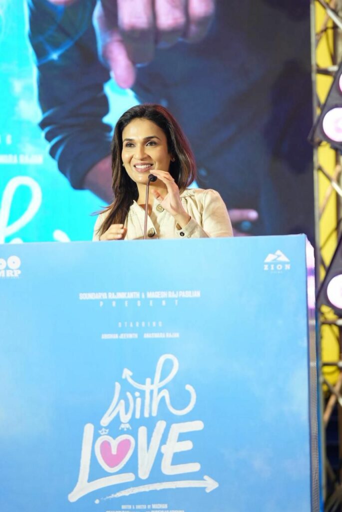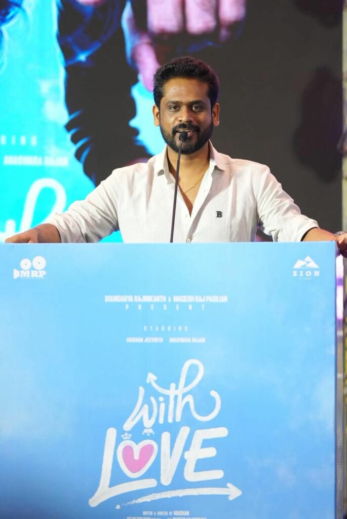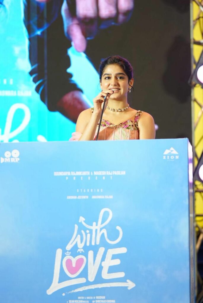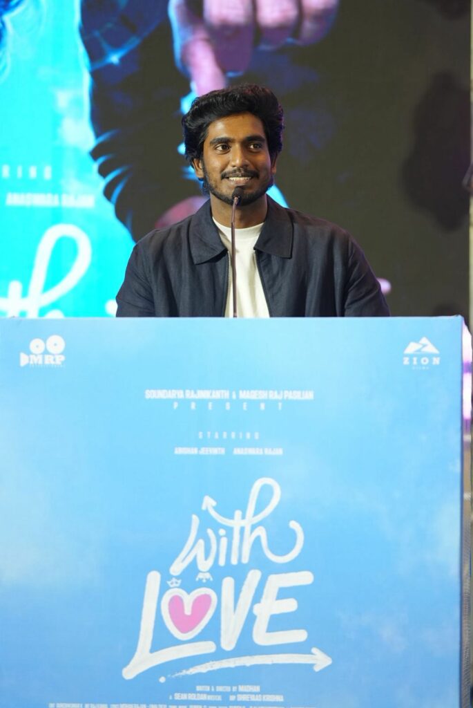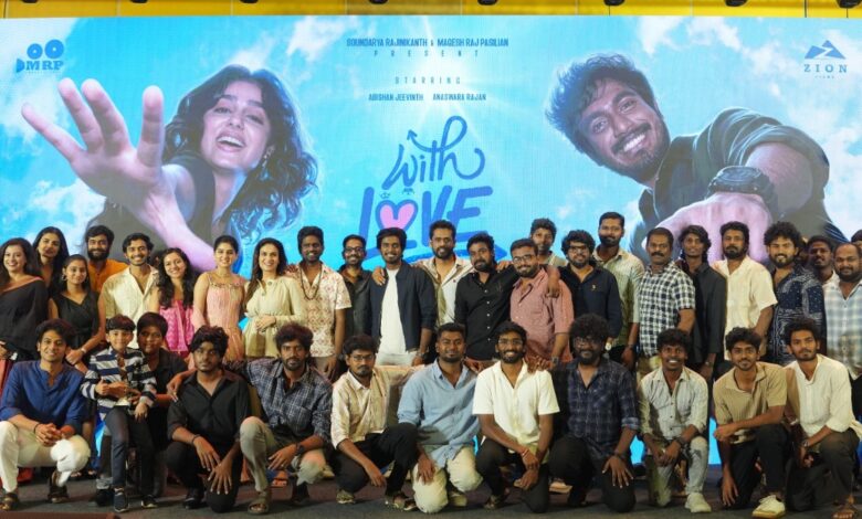 Zion Films சார்பில் சௌந்தர்யா ரஜினிகாந்த் மற்றும் MRP Entertainment இணைந்து வழங்கும், பசிலியான் நாசரேத், மகேஷ் ராஜ் பசிலியான் தயாரிப்பில், டூரிஸ்ட் ஃபேமிலி’ இயக்குநர் அபிஷன் ஜீவிந்த் மற்றும் அனஸ்வரா ராஜன் நடிப்பில் உருவாகியுள்ள, “வித் லவ் ( With Love )” திரைப்படம் வரும் 2026 பிப்ரவரி 6 ஆம் தேதி திரையரங்குகளில் வெளியாகிறது. இப்படத்தின் முன் வெளியீட்டு விழா படக்குழுவினருடன் திரை பிரபலங்கள் கலந்துகொள்ள, கோலாகலமாக நடைபெற்றது