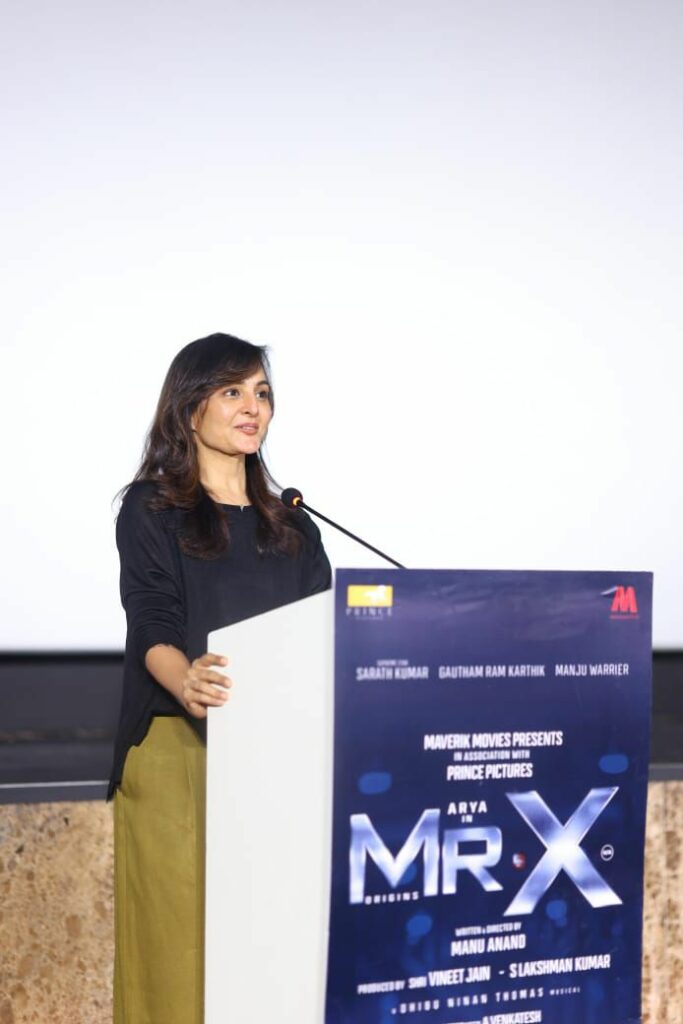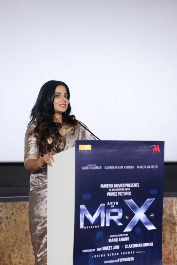 நடிகை மஞ்சு வாரியர் பேசும்போது, இந்த ஒரு தருணத்திற்காக தான் மாதக்கணக்கில் நாங்கள் அனைவரும் காத்துக் கொண்டிருக்கிறோம். இந்தப் படத்தின் கதையை ஓகே சொல்வதற்கு அதிக காலம் எடுத்துக் கொண்டது நான் மட்டும்தான் என பின்னாளில் ஆர்யா சொல்லி எனக்கு தெரிய வந்தது. மனு இந்தக் கதையை சொன்னதும் அதைப்பற்றி இன்னும் நிறைய புரிந்து கொள்ள வேண்டும் என்கிற எண்ணம் எனக்கு இருந்தது. நிறைய சந்தேகங்கள் இருந்தது. இது நம் தினசரி வாழ்க்கையில் பார்க்கும் ஒரு வாழ்க்கையே இல்லை. அதனால் அது குறித்து சில சந்தேகங்களையும் இயக்குநர் மனுவிடம் கேட்டிருக்கிறேன். அதற்கெல்லாம் பொறுமையாக எனக்கு பதில் சொன்னார். எனக்கே ஒரு நம்பிக்கை வந்ததால் இந்தப் படத்தில் நடிக்க சம்மதித்தேன். இதற்கு முன்பாக நிறைய ஸ்பை படங்கள் பார்த்திருப்போம். அதில் பெண்களுக்கும் முக்கியத்துவம் கொடுக்கும் விதமாக பல கதாபாத்திரங்கள் இடம் பெற்று இருக்கும். அந்த வகையில் மிஸ்டர் எக்ஸ் படத்தில் நான் நடித்திருக்கும் கதாபாத்திரம் எனக்கு கிடைத்ததற்கு நான் அதிர்ஷ்டம் செய்திருக்க வேண்டும். இந்தப் படத்தில் நடித்திருக்கும் ஒவ்வொரு கதாபாத்திரத்திற்கும் ஒவ்வொரு பின் கதை, ஒவ்வொரு கதாபாத்திர வடிவமைப்பு என எல்லோருக்குமே முக்கியத்துவம் கொடுக்கப்பட்டுள்ளது. இதுவரை நான் செய்திராத அளவிற்கு இந்த படத்தில் கொஞ்சம் அதிகப்படியான ஆக்ஷன் காட்சிகளிலும் நடித்திருக்கிறேன். அதனால் ஏற்பட்ட சின்ன சின்ன காயங்கள் இப்போதும் கூட இருக்கின்றன. ஆனால் அதை எல்லாம் எப்போதும் ஒரு ஞாபகார்த்தமாக வைத்துக் கொள்வேன் என்று கூறினார்.